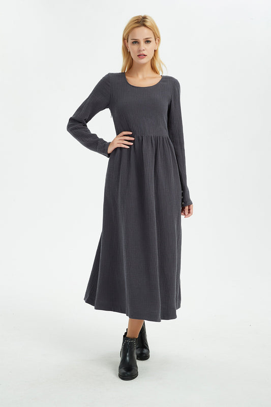 Gray linen dress, winter linen dress, women linen dress, long women dress, linen dress, linen pockets dress, long linen dress C1368