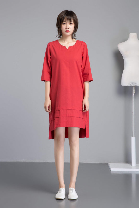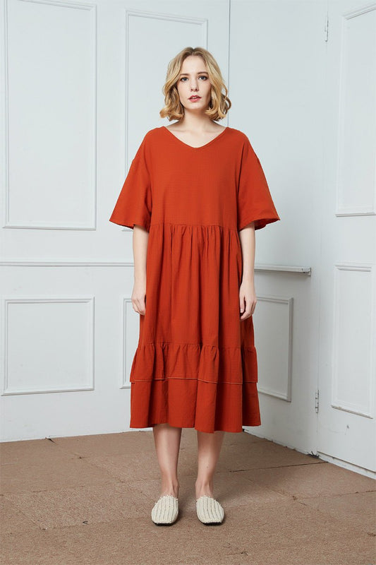 Oversized dress, orange cotton dress, simiple cotton dress, midi dress, dress with pockets, womens dress, ruffle dress C1406