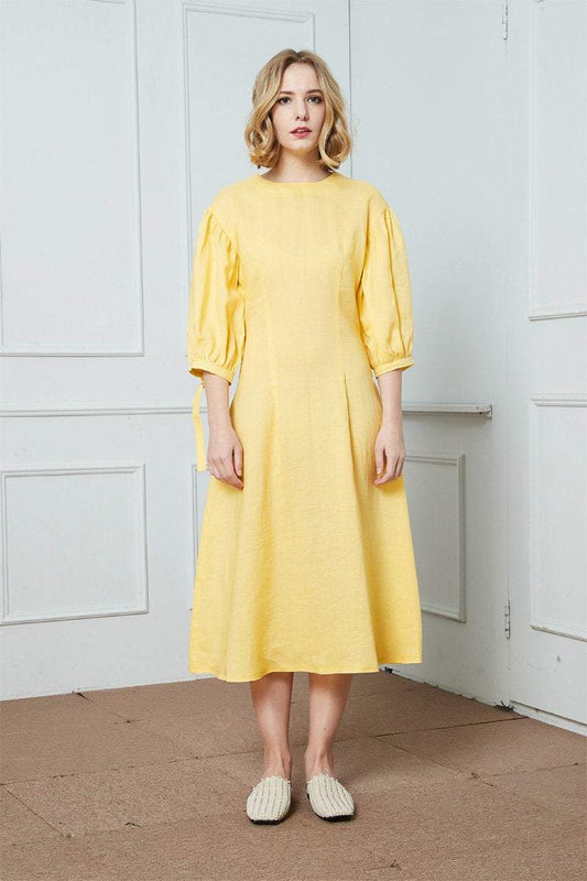 Linen Dress, Yellow Linen dress, Midi Dress, Womens Dresses, Organic Linen Dress, Summer Dress C1409