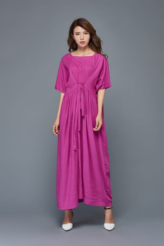 Plus size maxi dress, linen dress, linen women dress, long dress, linen wrap dress, summer dress, plus size dress, loose fitting dress C982