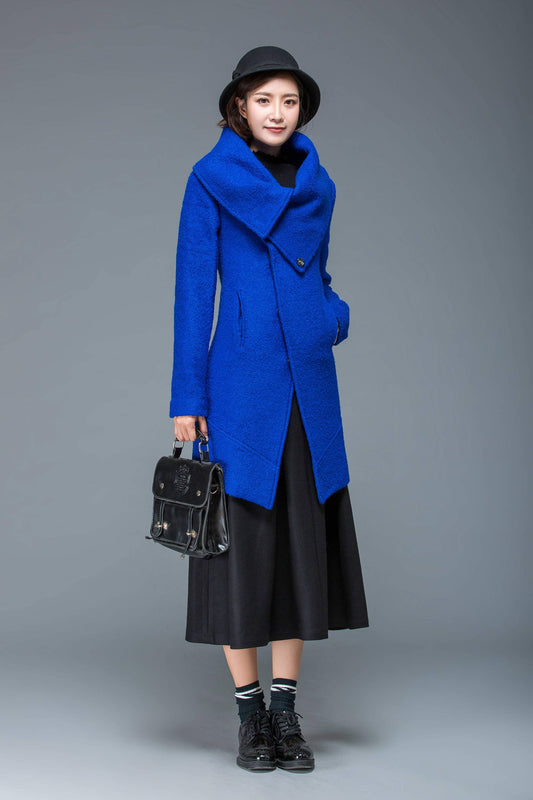 womens jacket, wool coat, bule jacket, winter warm coat, womens coats, coat, asymmetrical coat, loose jacket, warm jacket, C1172