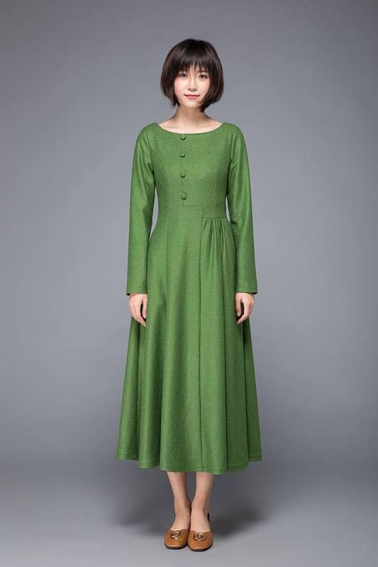 Long green dress, Warm dress, Wool winter dress, Elegant dress, Women dress, Tailored dress, Maxi dress, spring dress, Classic dress, C1230