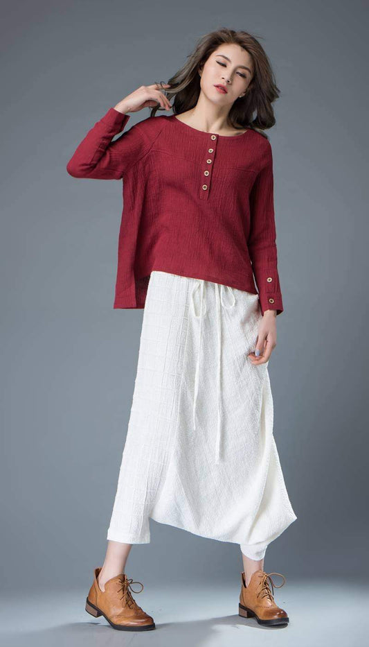 Linen top, womens tops, red linen top, buttons top, mini blouse, handmade blouse, linen blouse, loose shirts, made to order C842