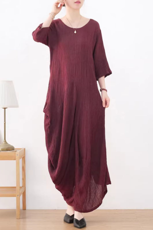 Asymmetrical loose fitting long linen dress women C5425