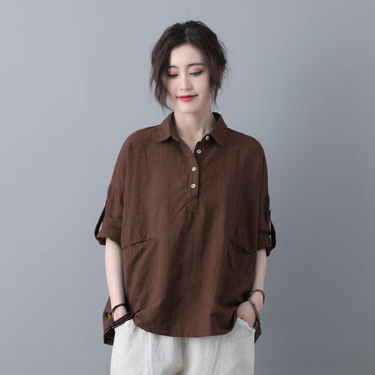 Brown Loose linen Tops C5346