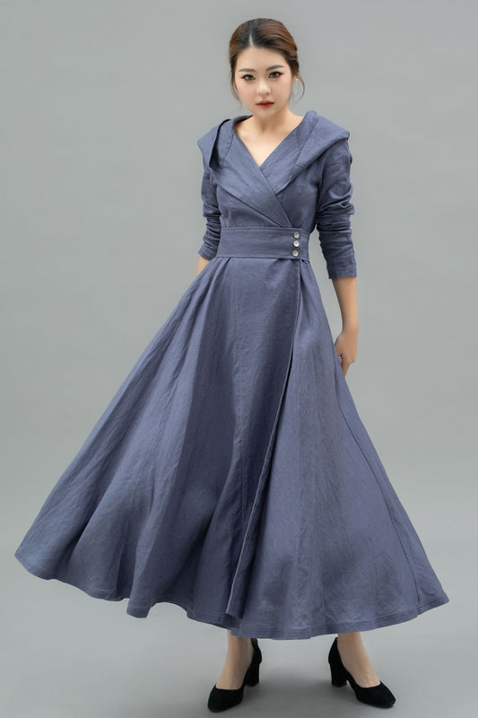 Elegant Hooded Long Linen jackets C4744 - yy05802