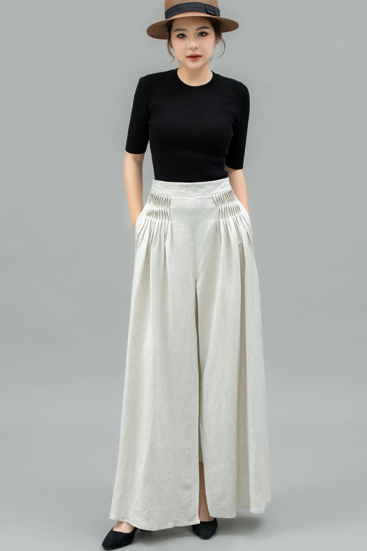 White Wide Leg Linen Palazzo Pant C4743 - CK2500021