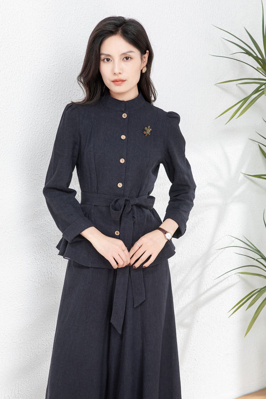 Puffy Sleeve womens long Linen Dress C4742 - CK2500018