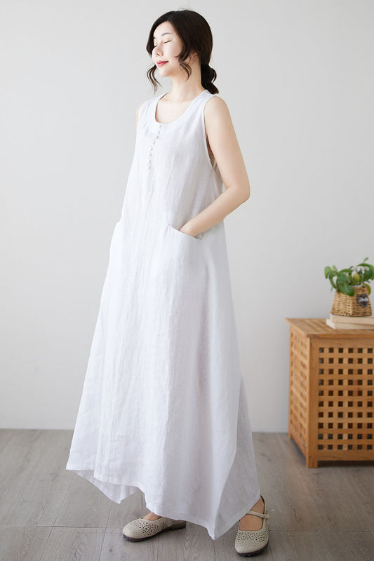 Women's Summer White Long Linen dress c4897 - CK2500474