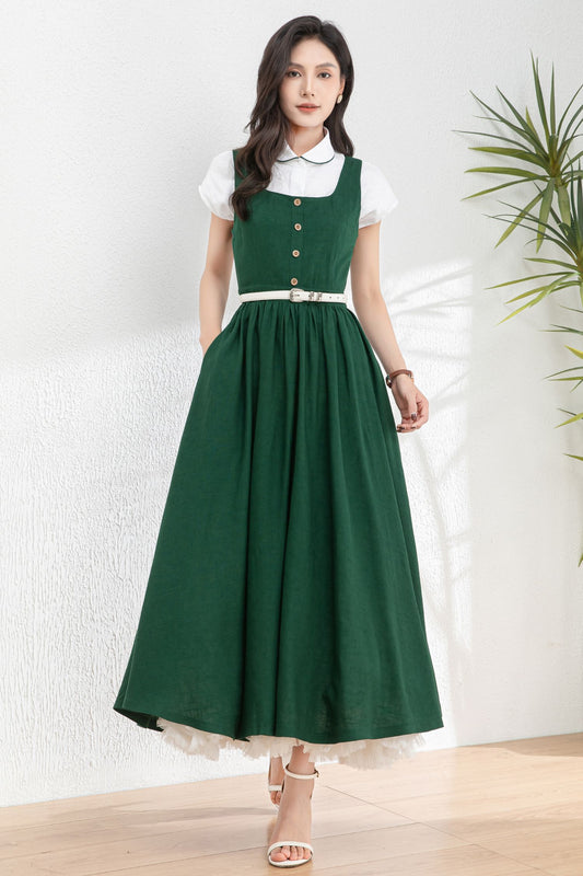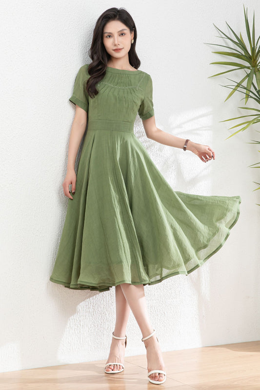 Green Women's swing Linen dress c4982 - ab04661