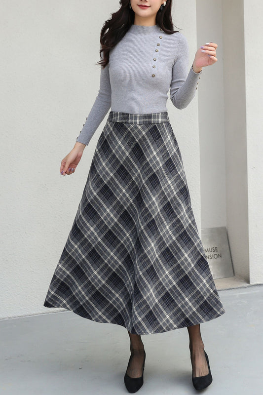 Plus Size Midi Plaid Wool Skirt C5188