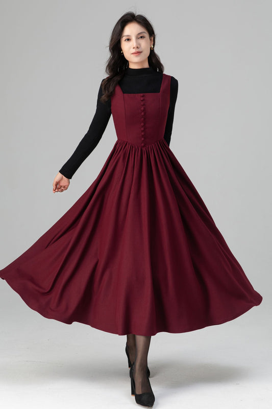 Square Neck Maxi Pinafore Wool Dress for Women C5201