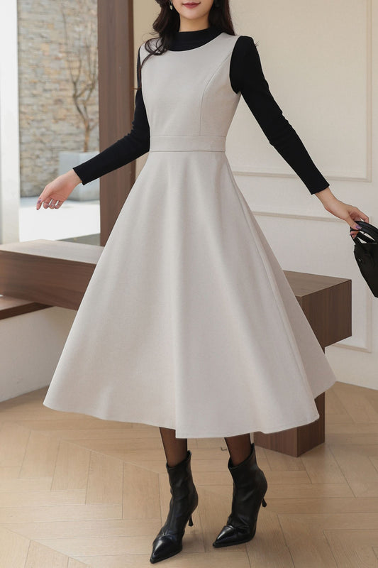 Sleeveless A-Line Midi Wool Dress C5193