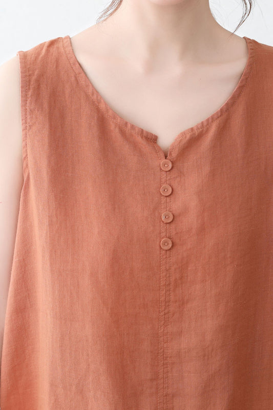 Sleeveless Summer organic linen Orange tops C2337