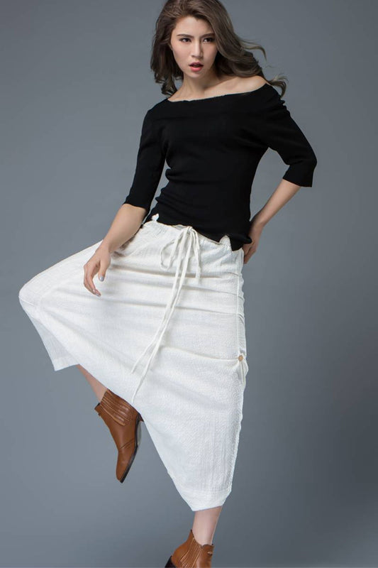 White Vantage Inspired French Long Swing Casual Pure Linen Dress C2237
