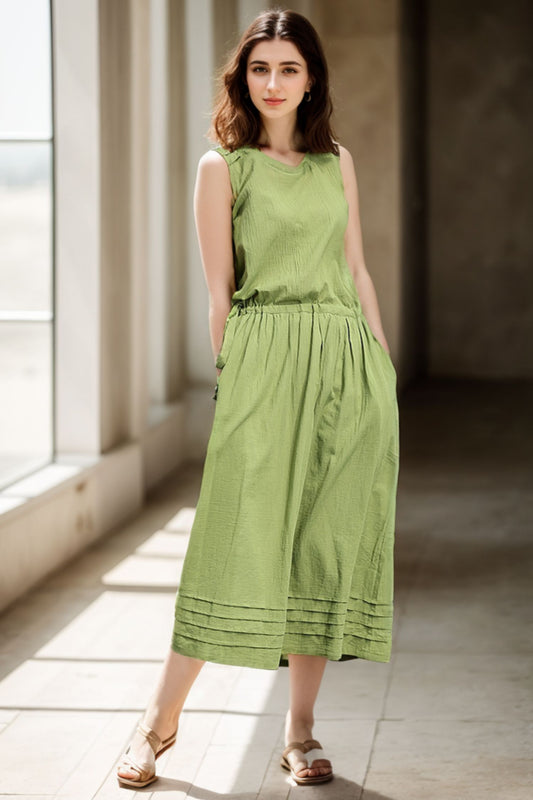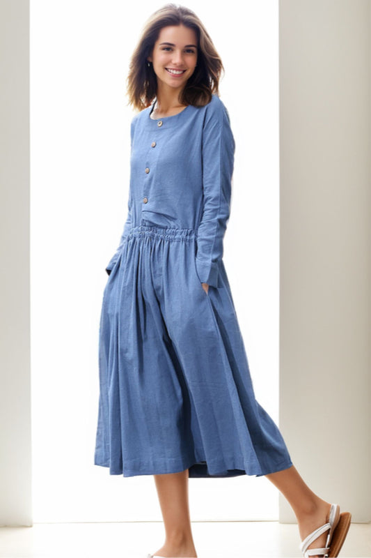 Linen Maxi Skirt - Flower Bud Shape Romantic Feminine Trending Womens Skirt C287