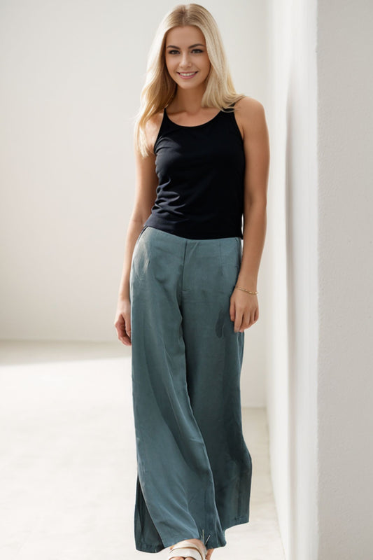 Irregular Waist Green Wide Leg Straight Leg Pants C156