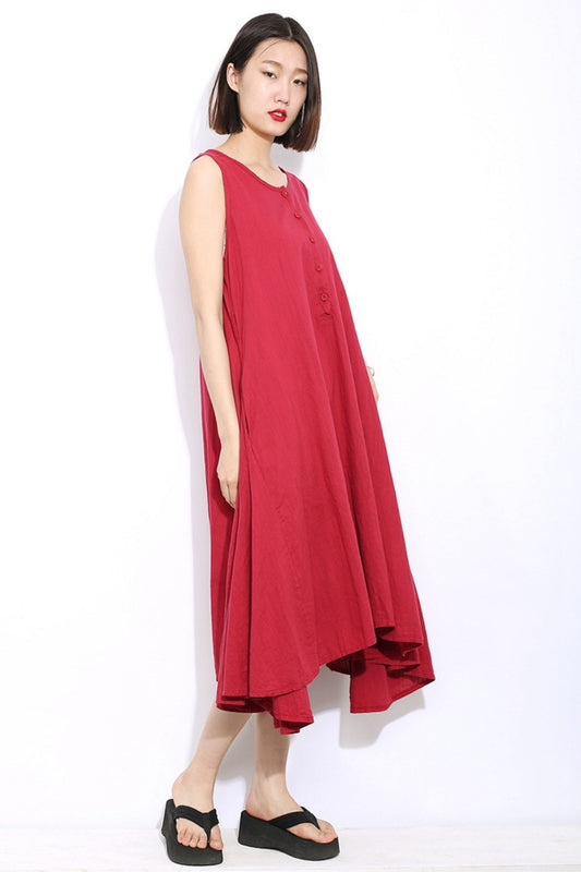 Maxi Dress Unique Sundress in Red Summer Long Dress C298