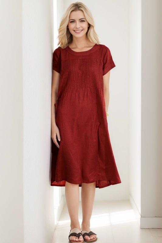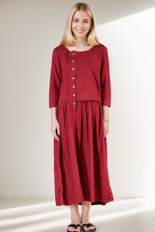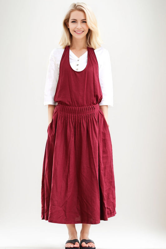 Loose-Fitting Cool Long Red Maxi Linen Suspender Dress C280