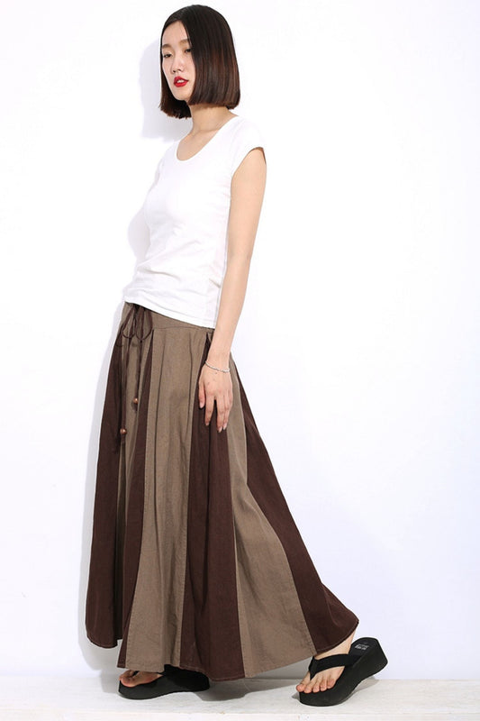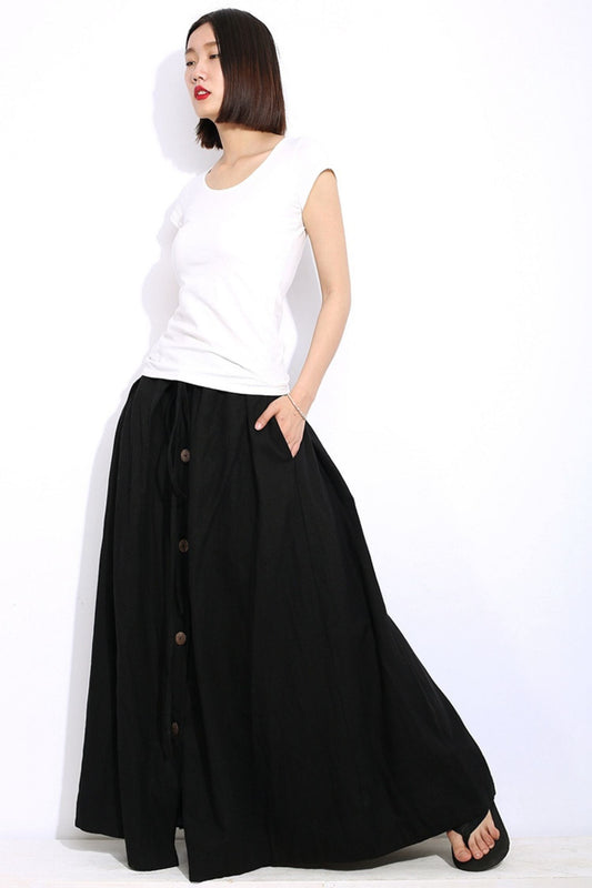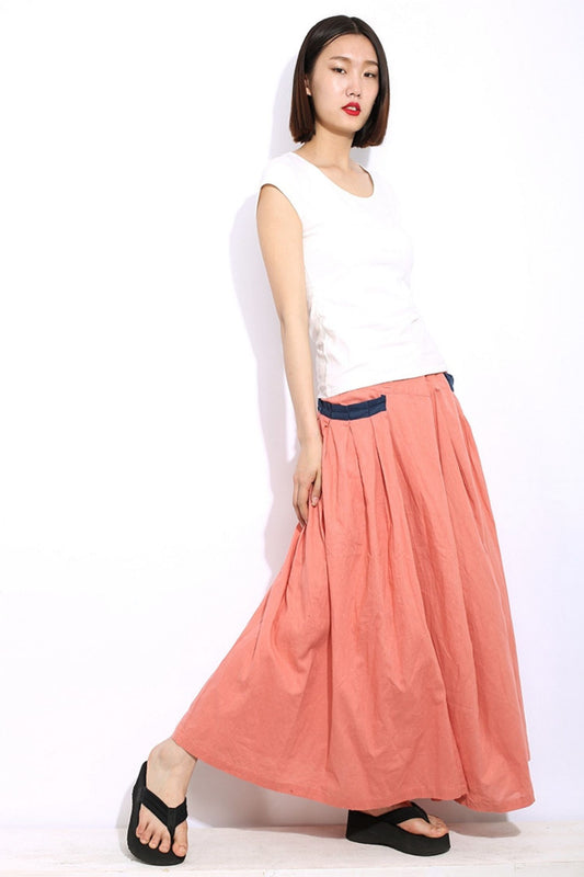 Blue Linen Maxi Summer Skirt with Deep Waistband & Pockets C364