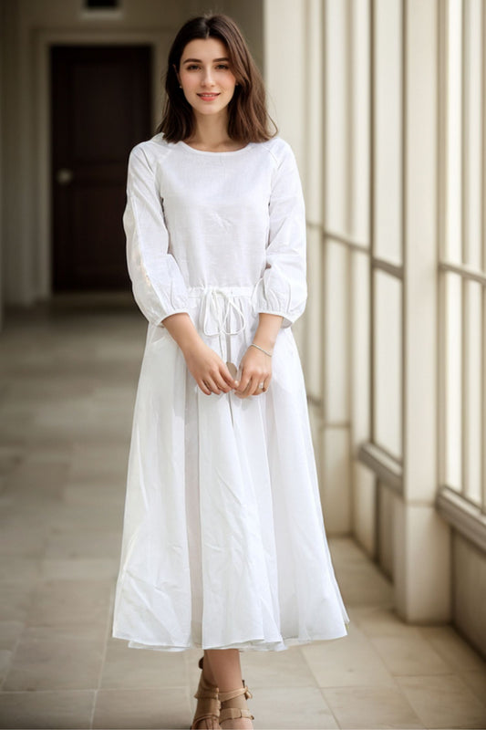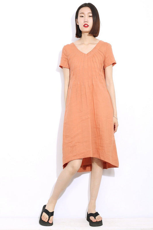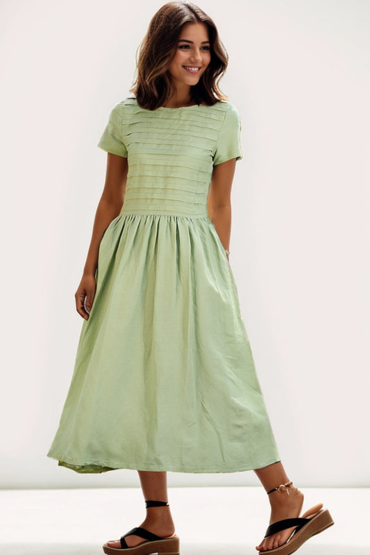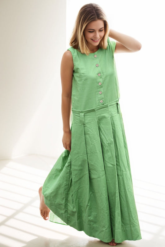 Green Maxi Casual Long Sleeveless Pleated Handmade Cool Linen Summer Dress C271