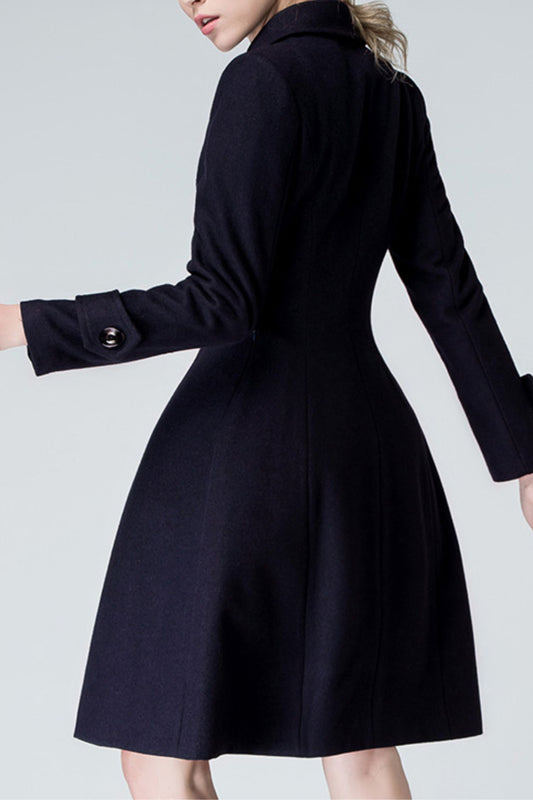Casual Navy Blue Short-Sleeved Pleated Mid-Length Dress for Women C268