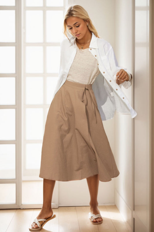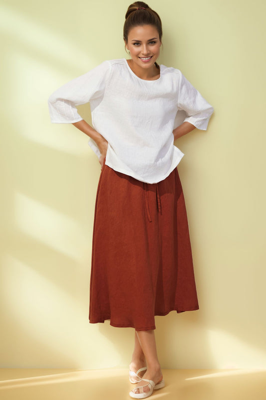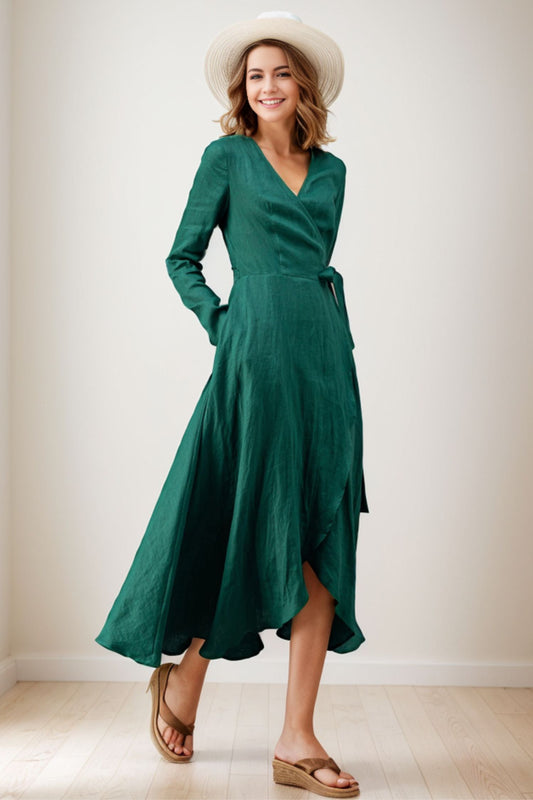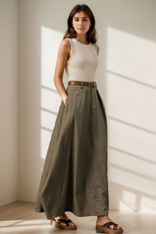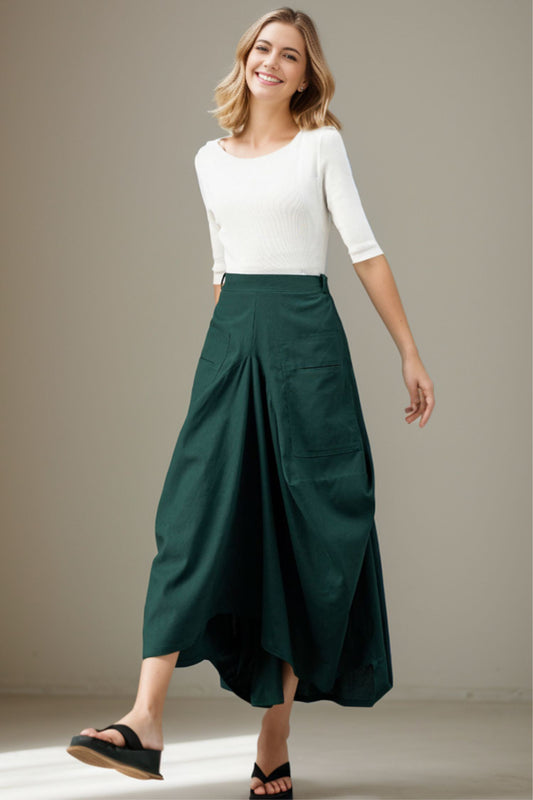 Women's Green Asymmetrical Casual Linen Skirt C4137