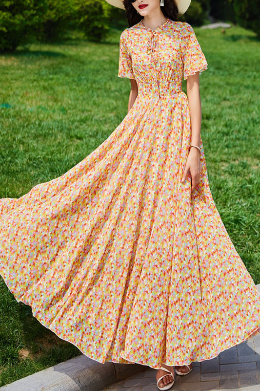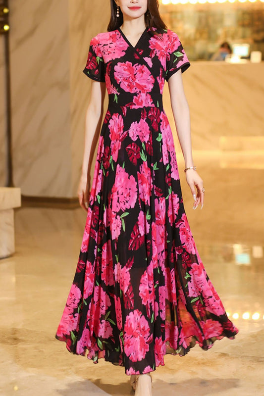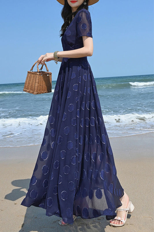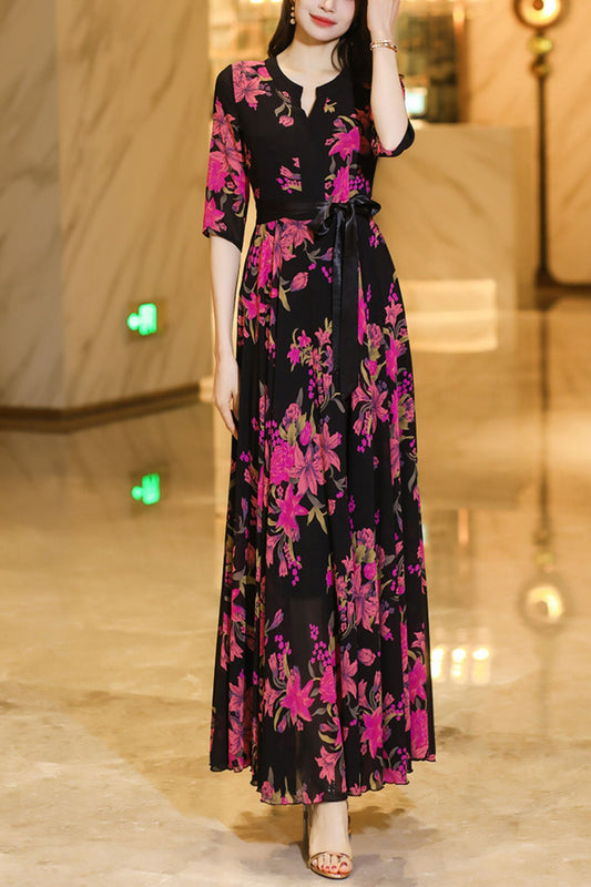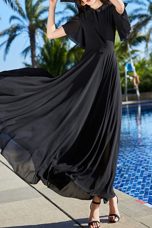 Women's New Chiffon Long V-neck Sleeveless Dress C4095