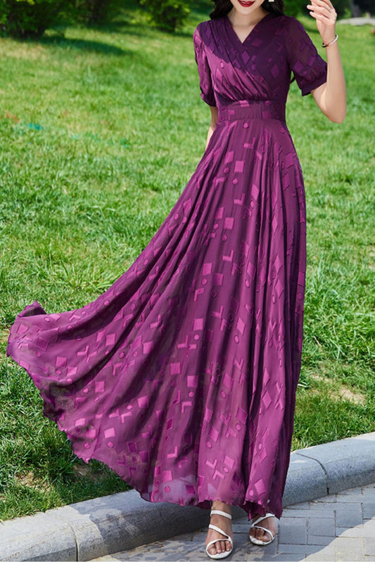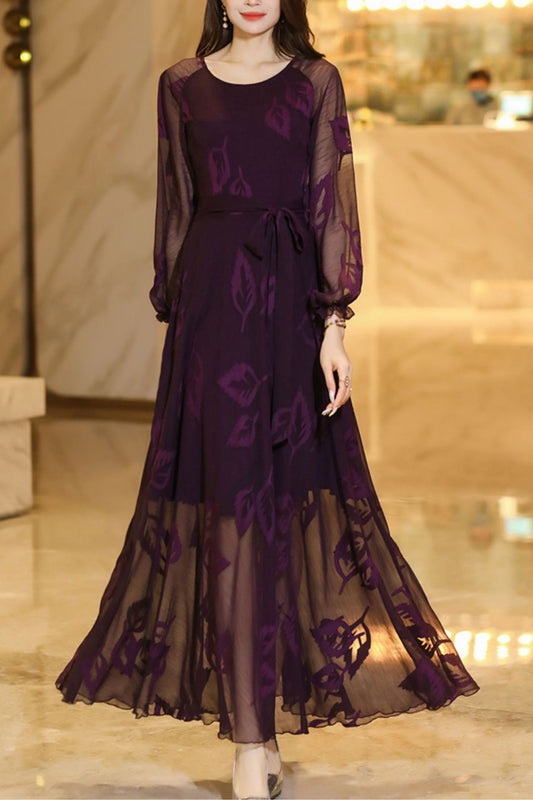 Summer Purple Long Sleeve Chiffon Dress C4110