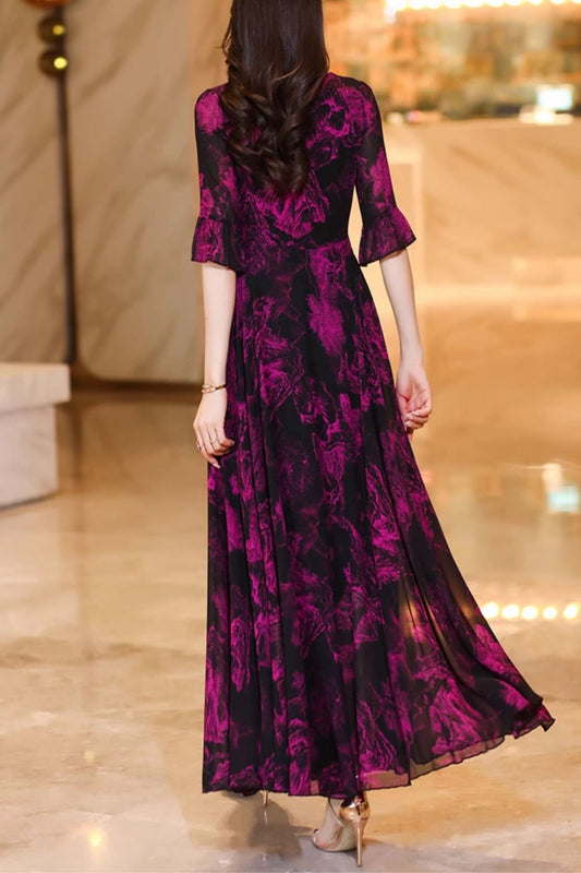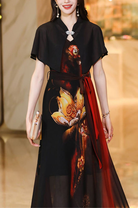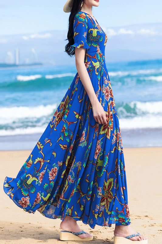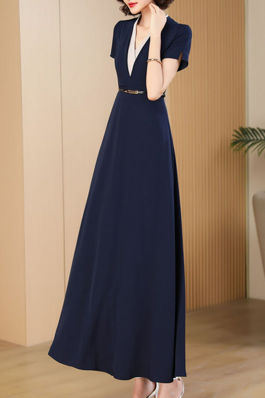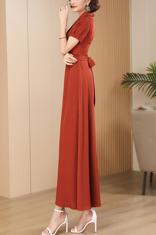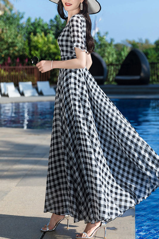 Chiffon Women Red Plaid Short Sleeve dress C4050