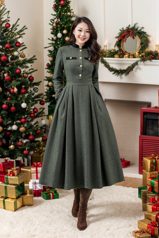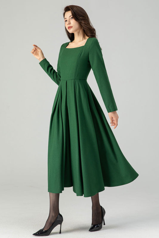 Green Wool Womens Dresses C3615-Size XS us2 #CK2301081