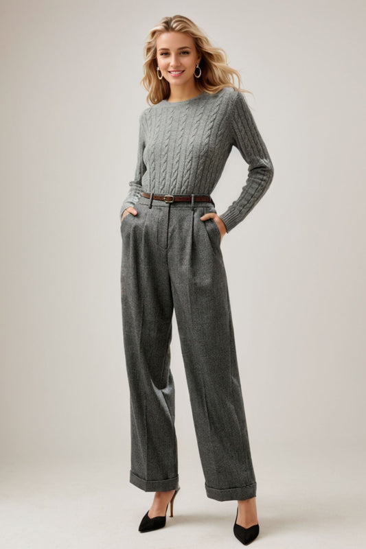 Wool Pants Women Wide leg Plaid Pants C3594 -Size XS US0 #CK2301332