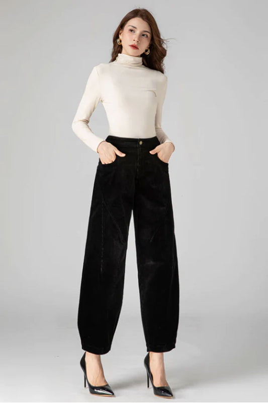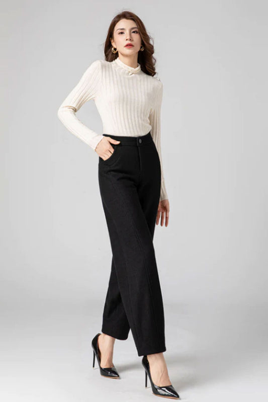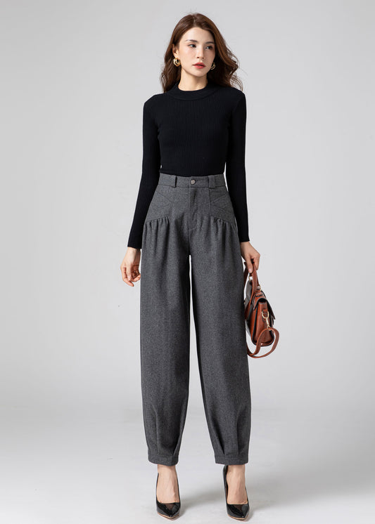 Wool Pants Women, Tapered Pants, Black Wool Pants C3589