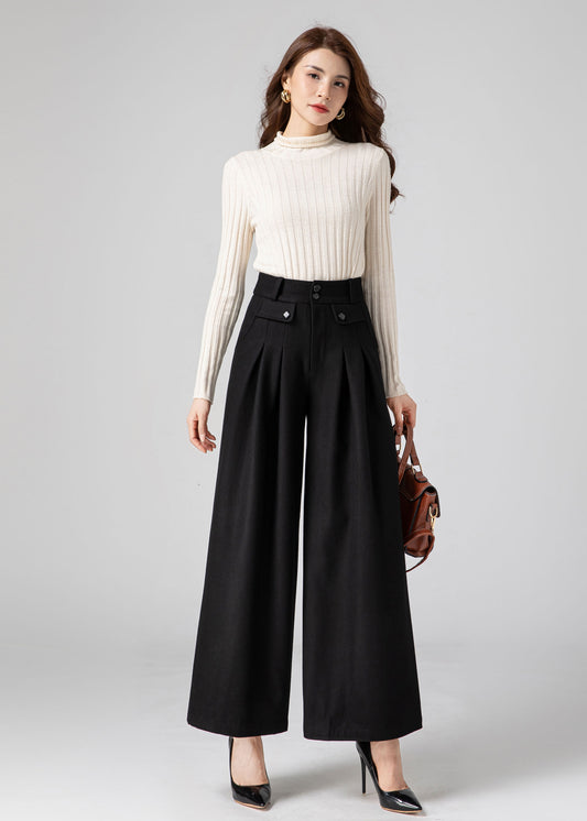 Wide Leg Wool Pants Women, Palazzo Pants C3590