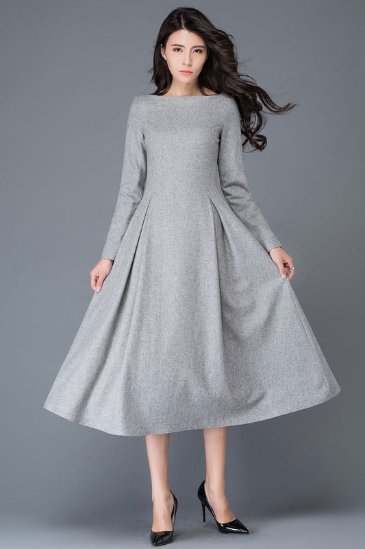Gray Wool Skirt, Pleated wool Skirt, Womens Wool Skirt C3548