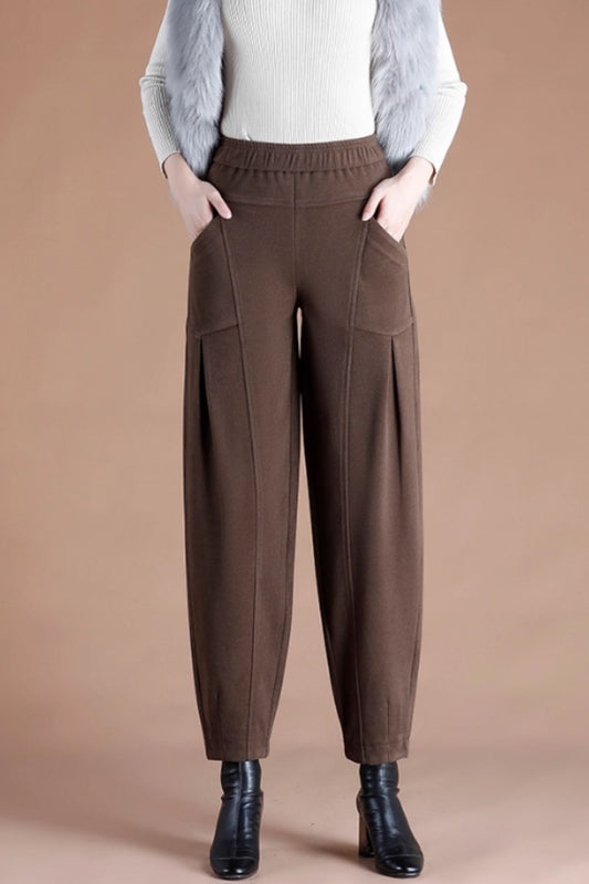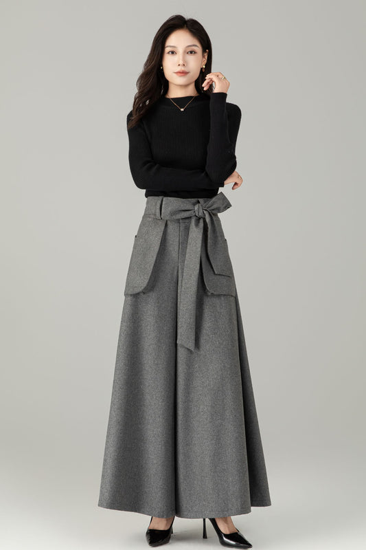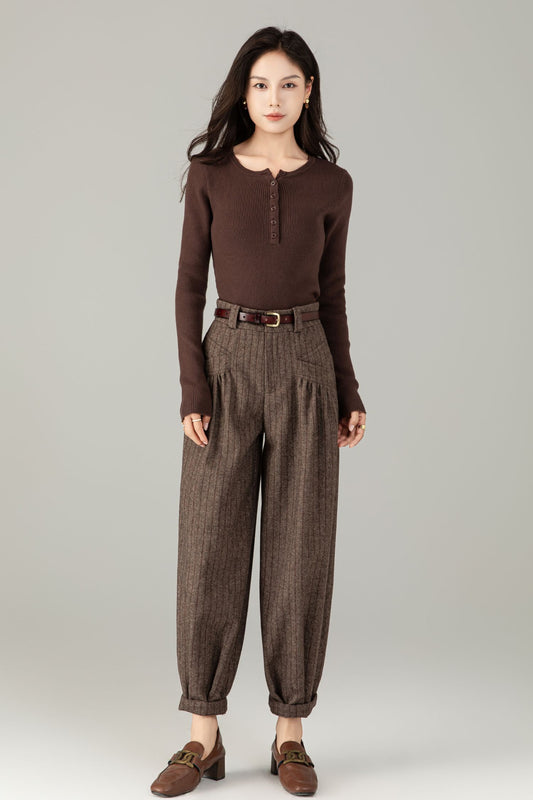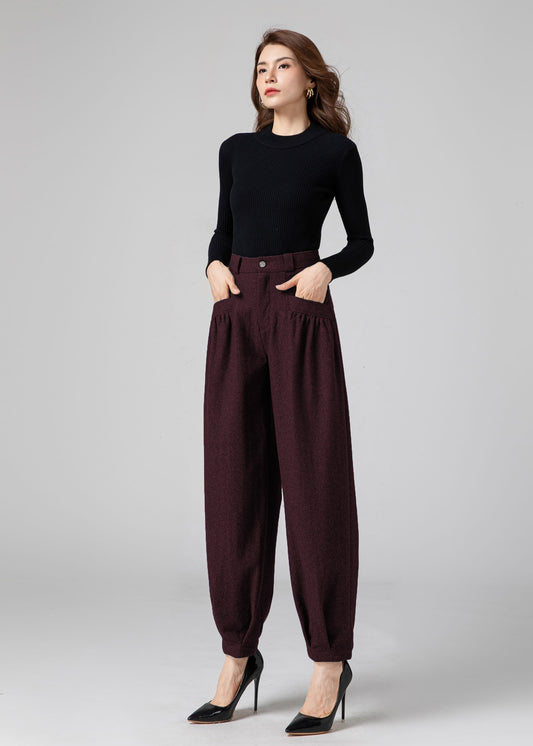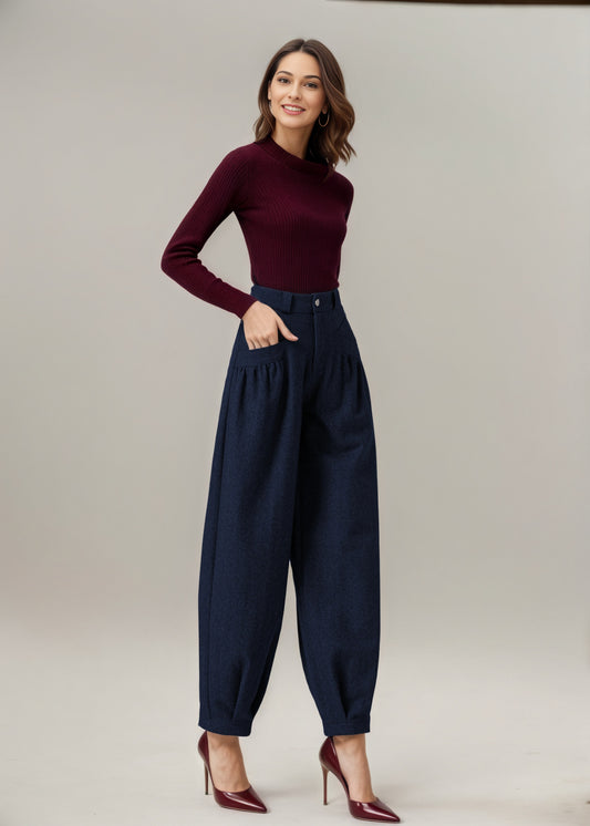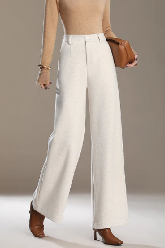 High-Waist Wide-Leg Wool Trousers — Palazzo Wool Pants C5245