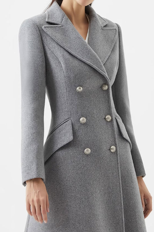 Double breasted long wool coat women C3577