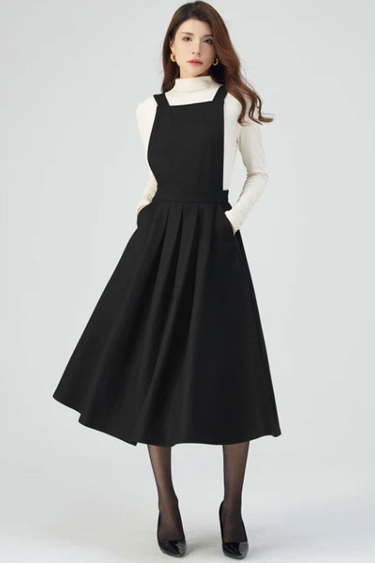 Black Wool Dress, Pinafore Dress Women C3547