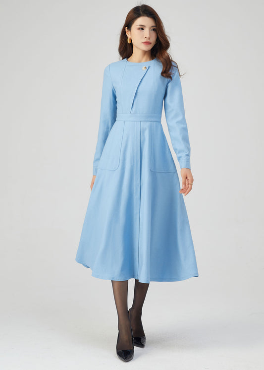 Blue Wool Dress, Winter Dress Women C3541