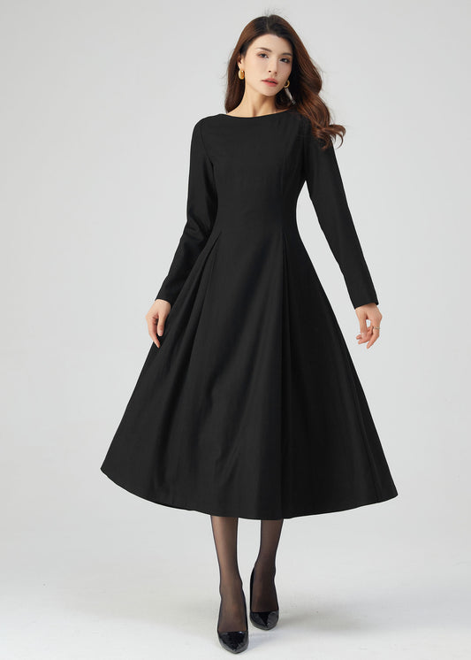 Womens winter wool midi Dress C4718