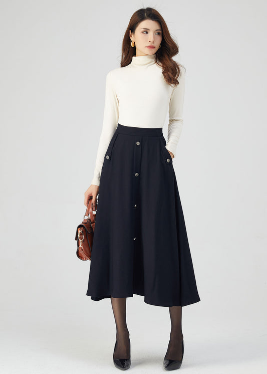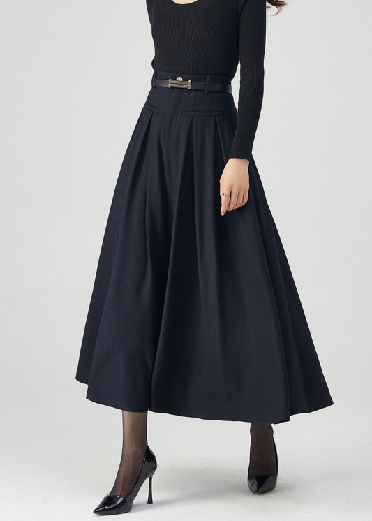Navy Wool Skirt, Midi Skirt, Womens Skirt C3545