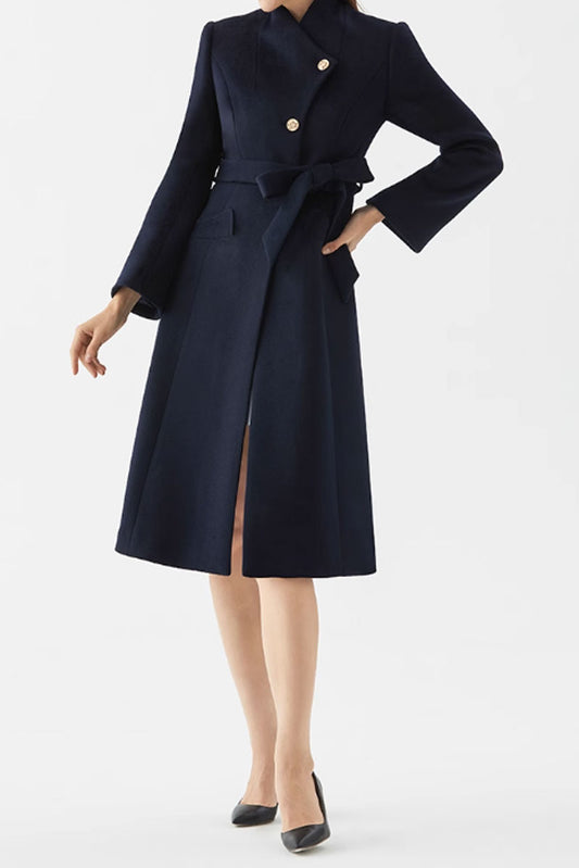 Asymmetrical navy blue wool coat women C3578