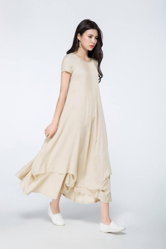 beige long linen loose dress C1071, Size US 2 #yy03420