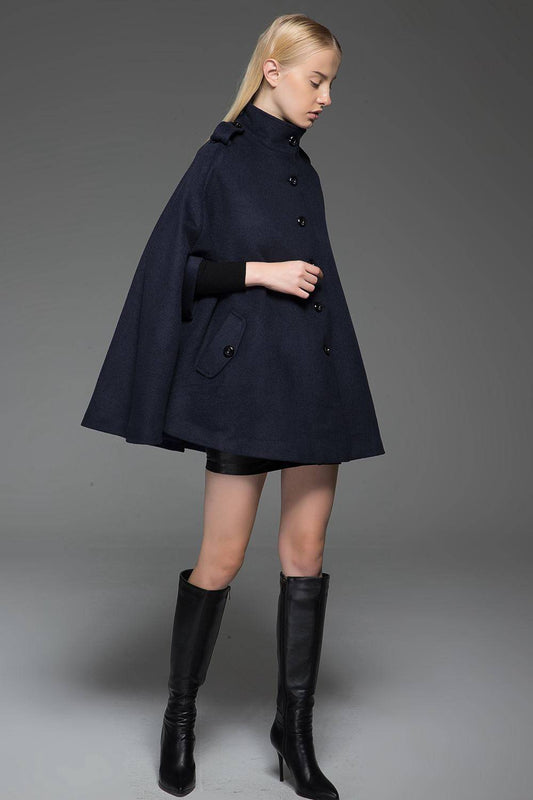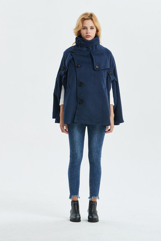 Cape coat, wool cape, womens cape, winter cape, blue cape, womens wool cape, winter warm coat, short coat, handmade cape C754