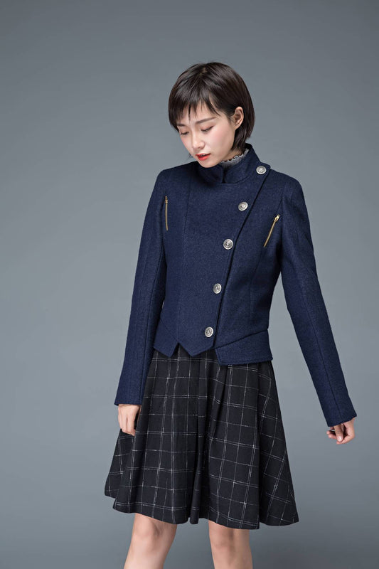 blue wool coat, winter warm wool jacket, womens jacket, blue asymmetrical coat, mini wool jacket, womens coat, blue coat, winter coat C1187