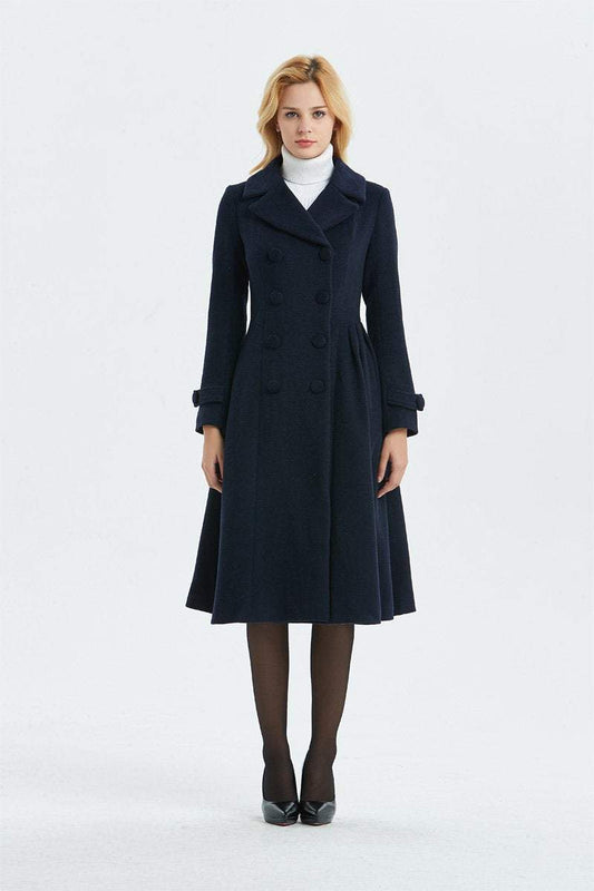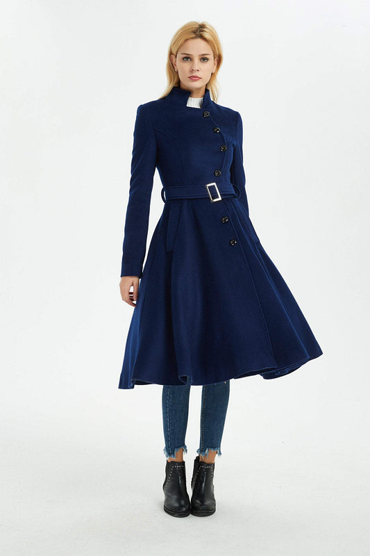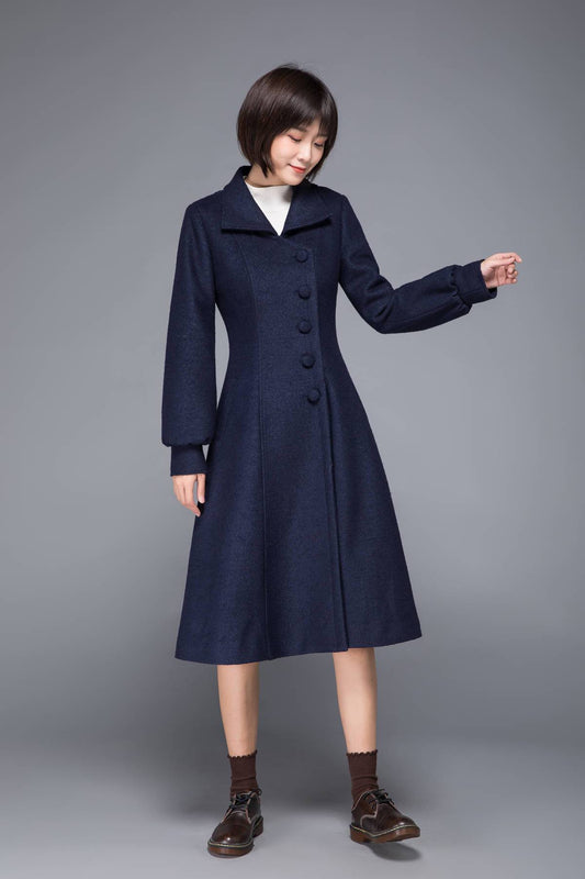 blue wool coat, winter wool coat, women coat, fit and flare coat, blue coat, warm coat, coat with pockets, winter warm coat C1372
