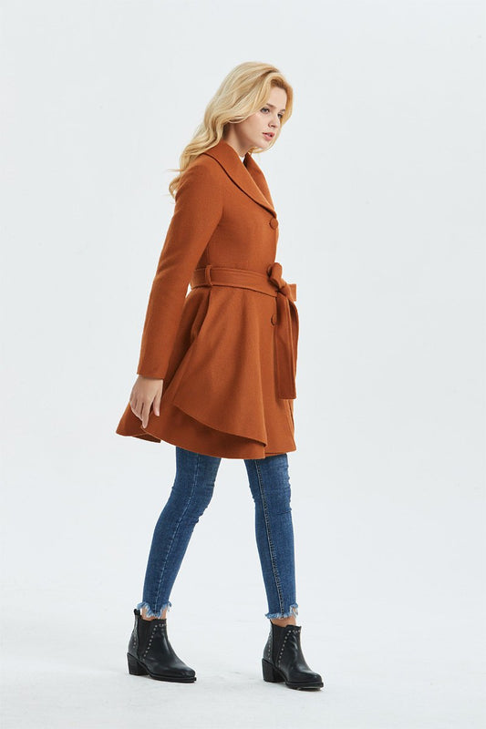 Brown wool coat, winter coat, womens coat, midi coat, princess coat, belted coat, coat with pocket, fashion coat, warm coat, cute coat C1326