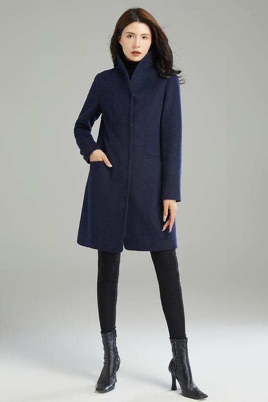 Women Navy Blue Wool Coat C2989#,Size 170-XS CK2202239