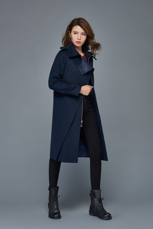 Winter coats for women, navy blue wool coat, mid length coat, unique coat, warm jacket, womens coats, zipper coat, custom jackets C973