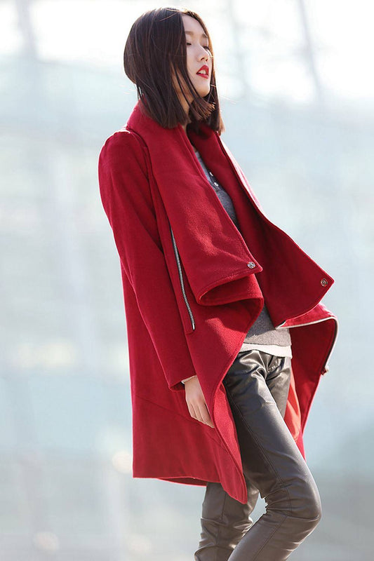 Winter coat, jacket, winter coats for women, red coat, winter coat, coat, womens coats, womens jackets, wool coat, Asymmetrical coat C179